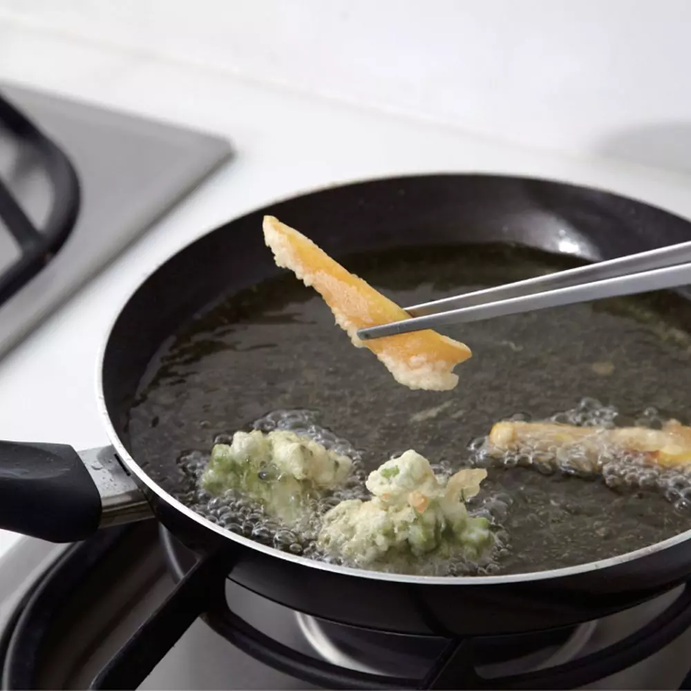 Oppdag Yoshikawa EAtoCO Saibashi, japanske kjøkkenpinsetter av høy kvalitet laget av 18-0 rustfritt stål. Disse pinsettene måler 25 cm i lengde og veier 46 g, og tilbyr optimal balanse og kontroll for presisjonsarbeid på kjøkkenet. Det slanke designet gjør dem perfekte for enkel håndtering av små ingredienser og delikate dekorasjoner.